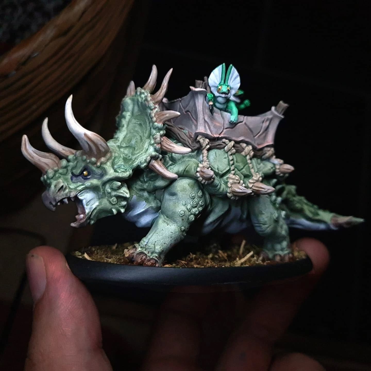 No clutch of dinosaurs would be complete without something iconic. Warp Miniatures didn't disappoint with the addition of the Triceratopsian, which comes with a howdah on the back where your Slinks can sit and pepper the enemy from afar.
