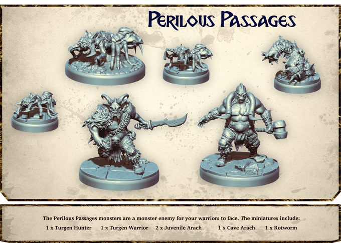 There are over twenty new scenarios included in the Vaults of Zarn campaign where you can play competitively, cooperatively and solo against the monsters that dwell down in the depths. You will also find new rules for monsters, search tables, legendary treasures and more.