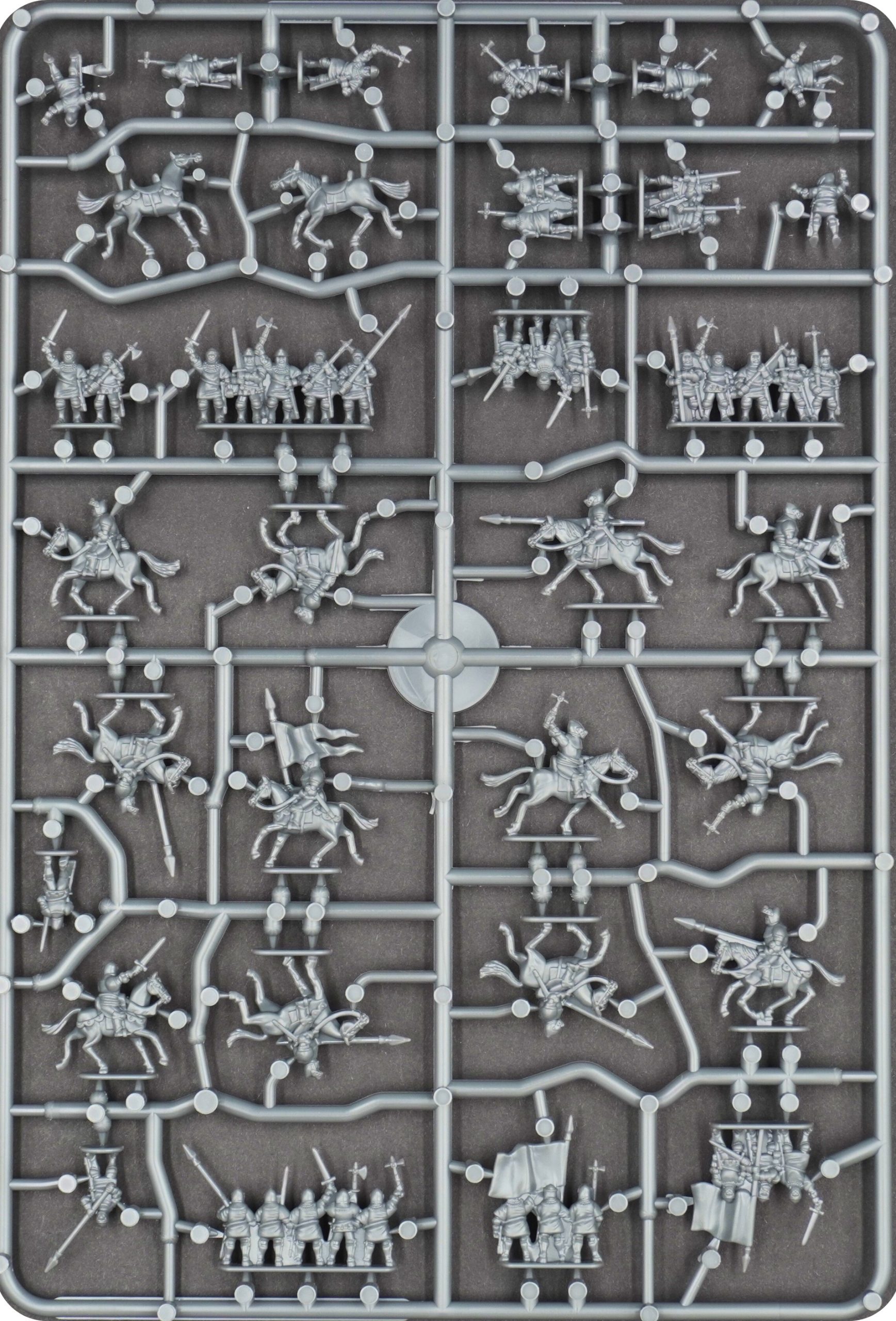 There are four unique frames that Wargames Atlantic has been working on. To start with, you have the English Longbowmen (with bows and melee weapons) and the English Foot Knights alongside their Men At Arms.